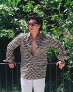 Camisa oversized de algodón fino, con estampado blockprint.