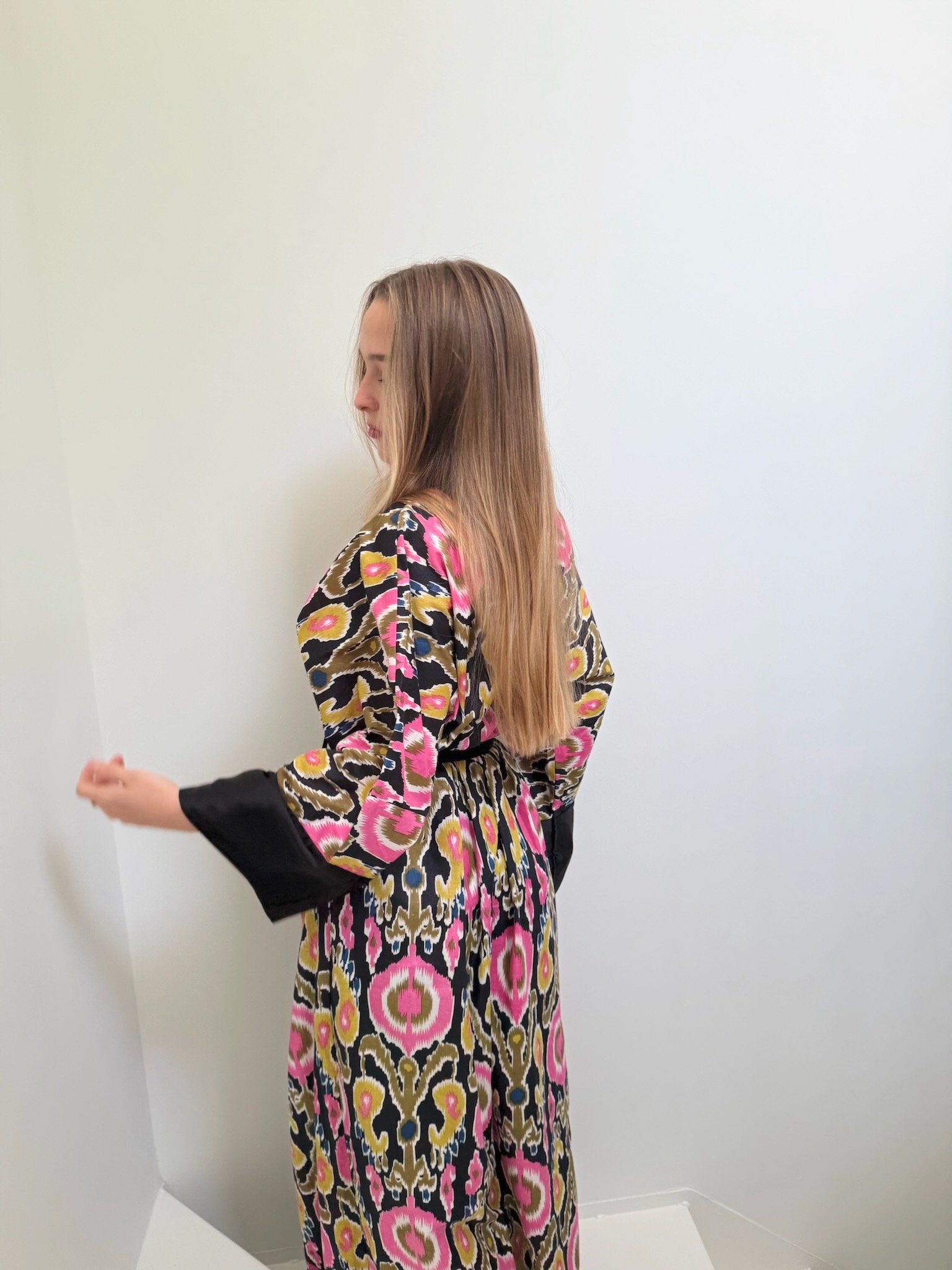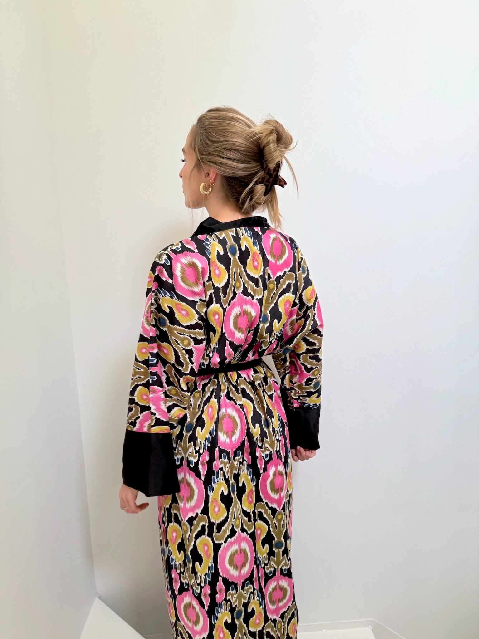 kimono con tela de algodón y mezcla de satín con viscosa.
