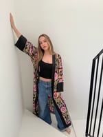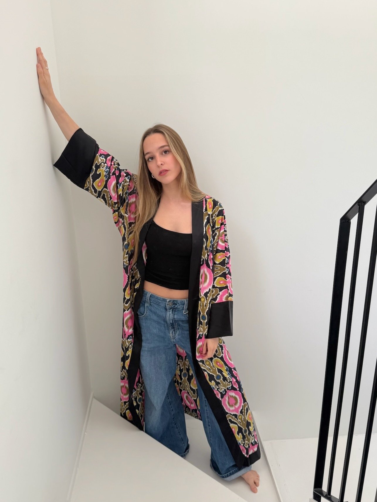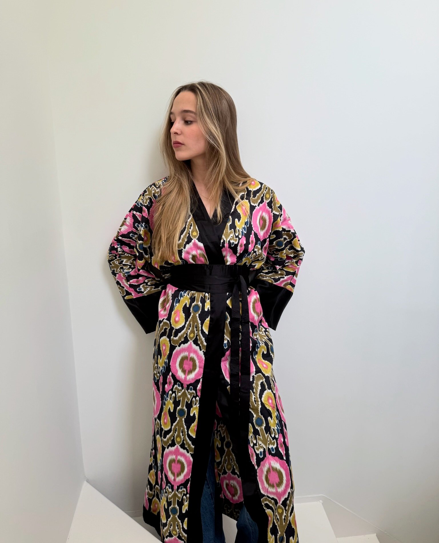 El kimono es talla única y mide 133 cm de largo. El cinturón permite ajustarlo tanto como quieras.